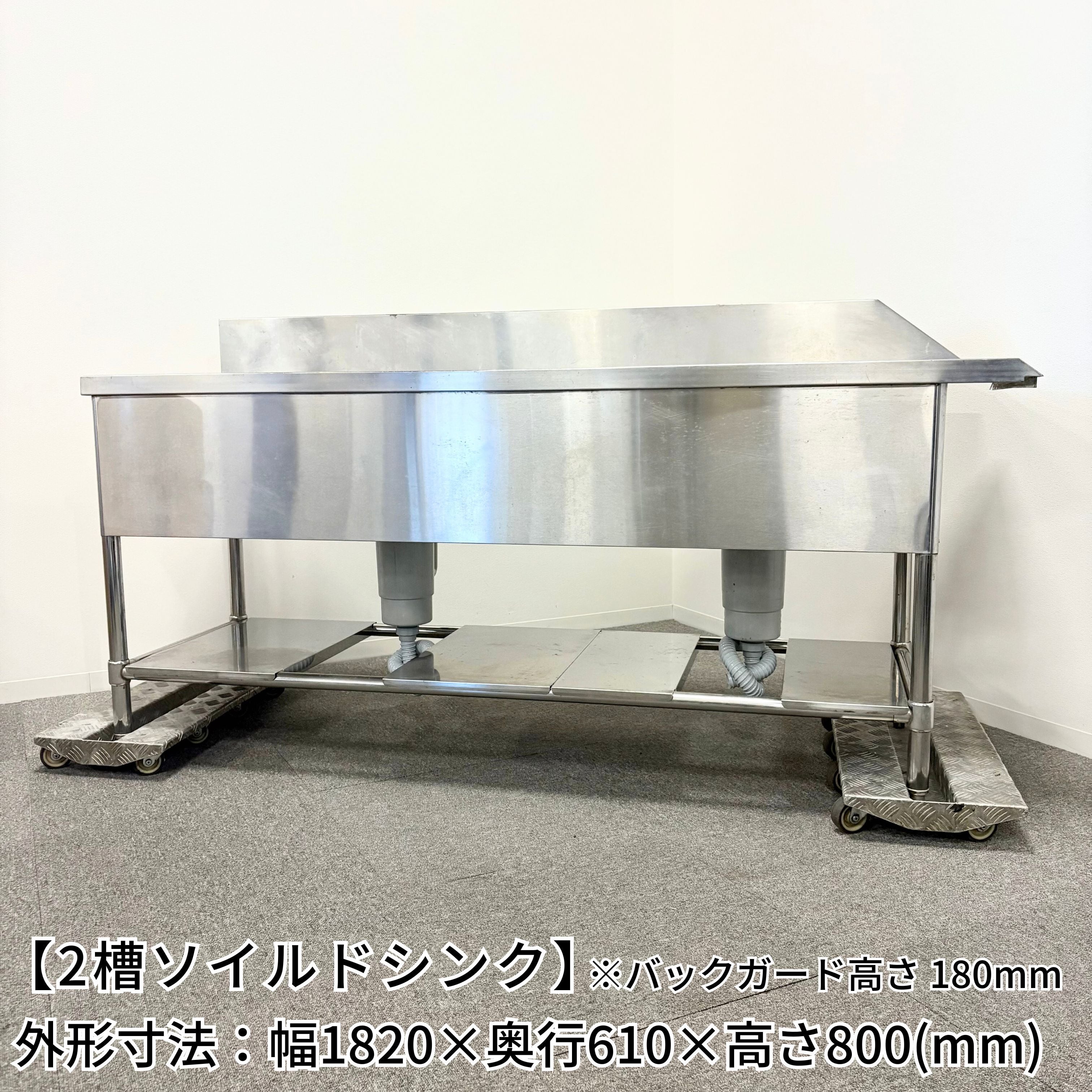 2槽ソイルドシンク/幅1820mm×奥行610mm×高さ800mm/業務用/厨房機器/流し台/1636 | 厨房機器のLIFE MARK'S | ONLINE SHOP【厨房機器の販売・買取・設置工事】