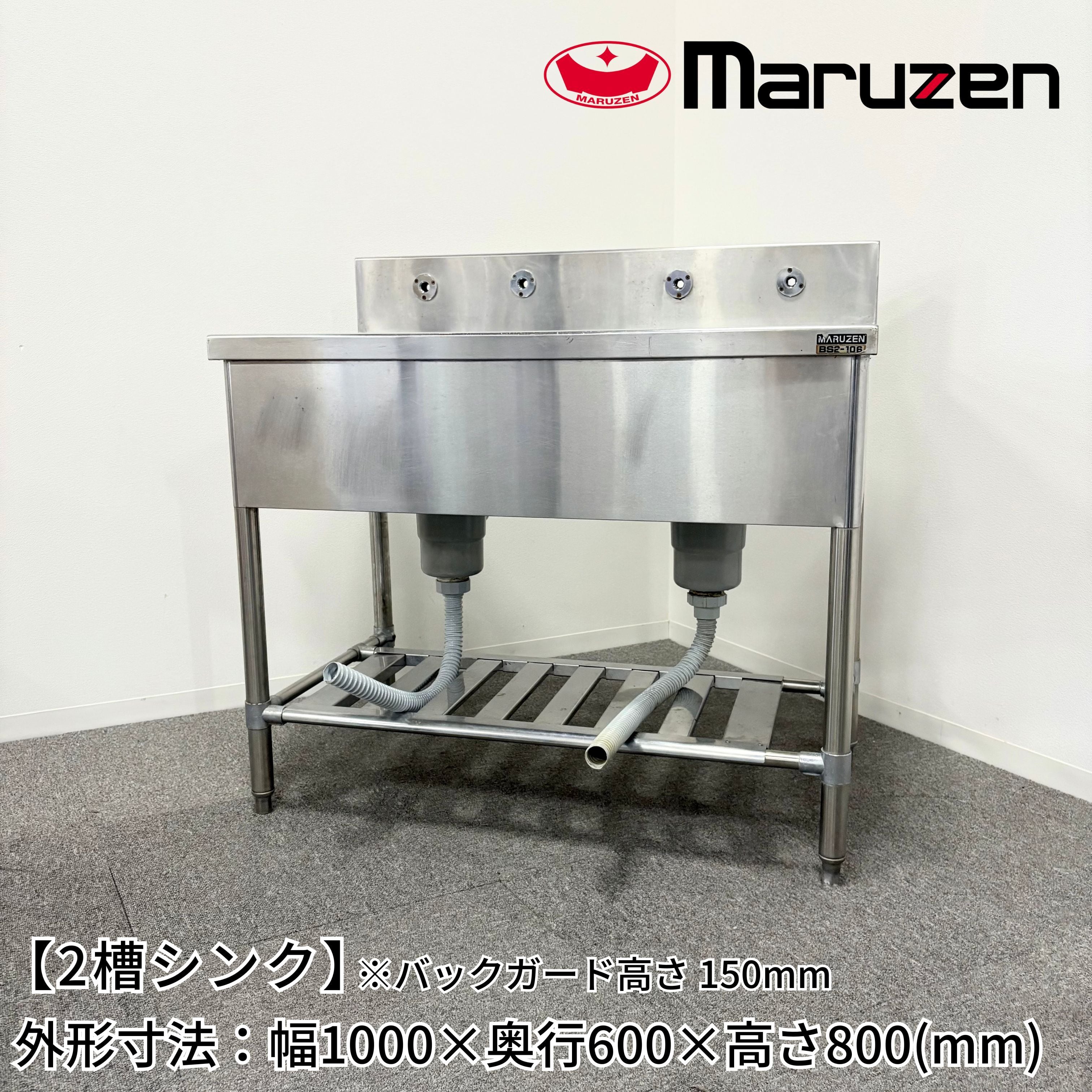 2槽シンク/マルゼン/BS2-106/幅1000mm×奥行600mm×高さ800mm/業務用/厨房機器/流し台/1640 | 厨房機器のLIFE MARK'S | ONLINE SHOP【厨房機器の販売・買取・設置工事】