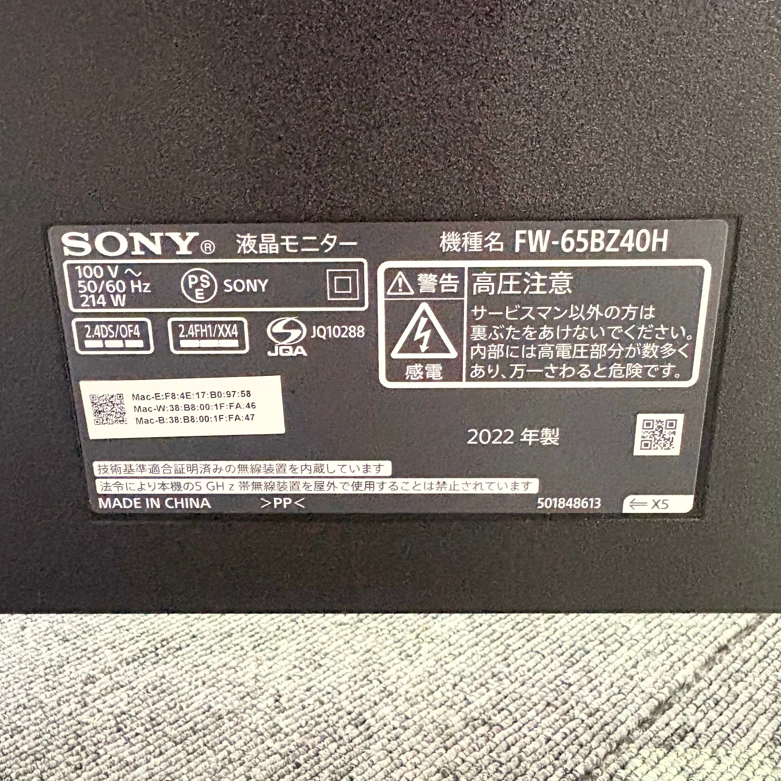 4K液晶モニター/65インチ/SONY/FW-65BZ40H/幅1450mm×奥行903mm×高さ338mm/会議用/店舗サイネージ/1663